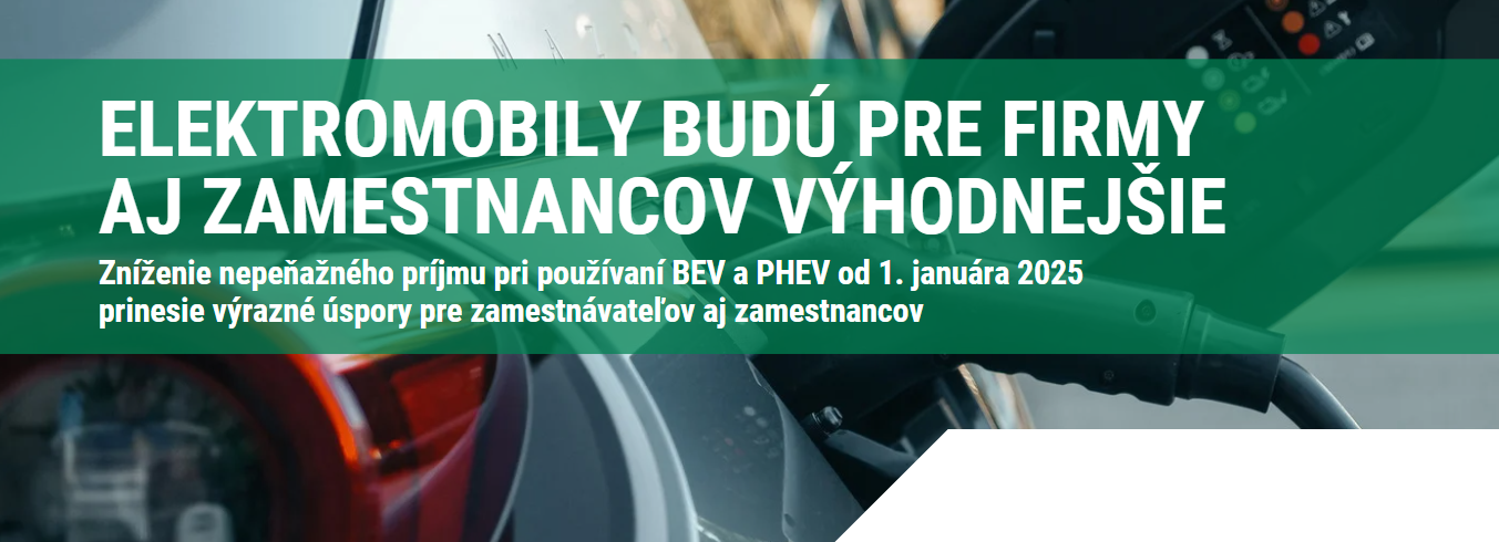 Slovenská asociácia pre elektromobilitu (SEVA) privítala prijatie významného legislatívneho opatrenia na podporu elektromobility na Slovensku. Zmenou je zníženie sadzby zdanenia nepeňažného príjmu, ktorý vyplýva z používania služobných batériových elektrických vozidiel (BEV) a plug-in hybridov (PHEV) aj na súkromné účely zamestnancov z aktuálneho 1 % na 0,5 % obstarávacej ceny vozidla mesačne, s účinnosťou od 1. januára 2025. Očakáva sa, že toto opatrenie výrazne zníži náklady zamestnávateľov a prispeje k vyšším čistým príjmom zamestnancov, čím sa celkové náklady vlastníctva (TCO) elektromobilov výrazne zlepšia oproti vozidlám so spaľovacími pohonmi.